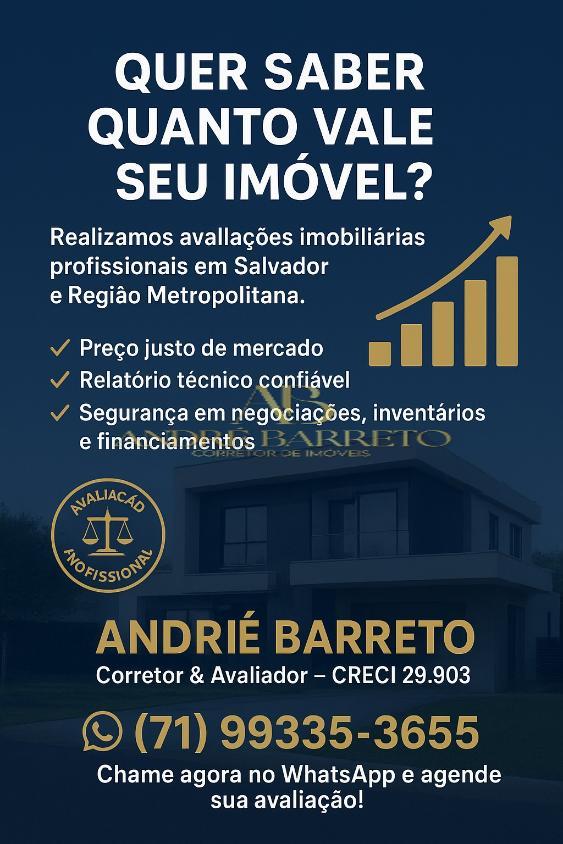 Especialista em avaliação imobiliária, laudos técnicos (PTAM), perícias e intermediação de imóveis, André Barreto atua com excelência na compra, venda e avaliação de imóveis residenciais, comerciais e de alto padrão em Salvador e Região Metropolitana da Bahia.
