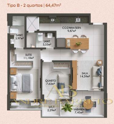* 2 Quartos - 64,47m²